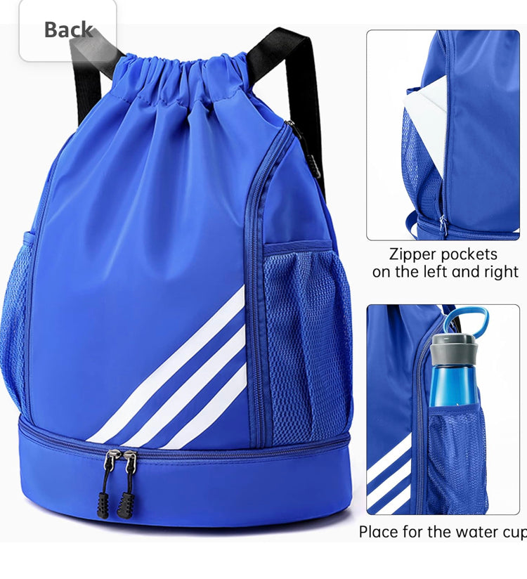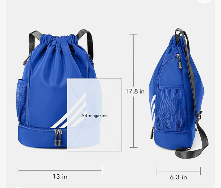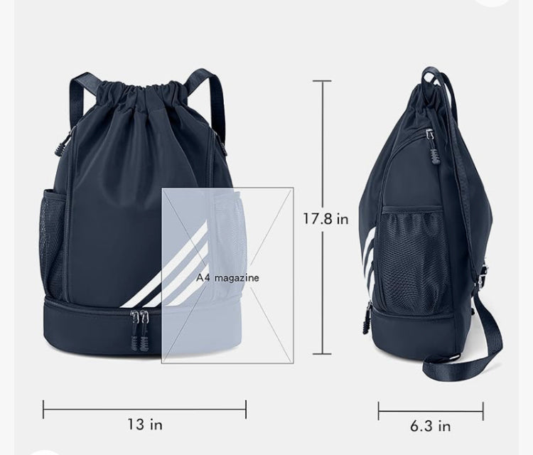 Glavni prostor ruksaka s uzicom ima dimenzije 17,8 inča x 13 inča što je dovoljno veliko da u njega stane košarkaška lopta, odjeća za teretanu, oprema za plivanje, sportski ručnik i dnevne potrepštine.